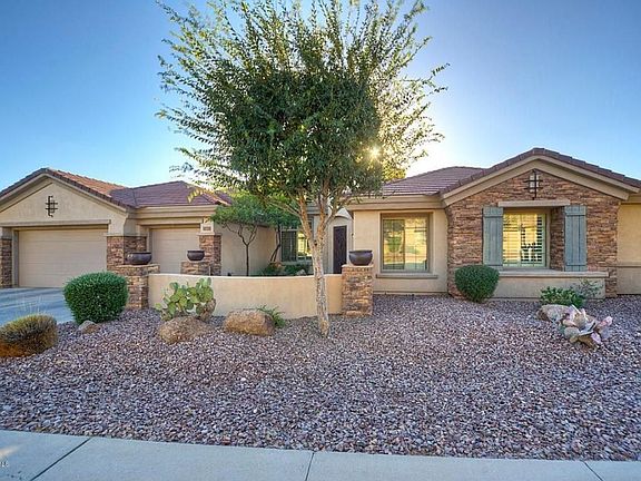 For more information on this property, contact the Listing Agent, Kathleen Ticknor at (623) 340-2677 or kathleen@dreamazliving.com. **GORGEOUS and UPGRADED on a WASH LOT W/ POOL/SPA** Popular Brentwood model with 4 bedrooms, 3.5 baths, including PRIVATE CASITA w/ full bath, accessible through courtyard. Gorgeous custom screen door at entry! Plantation shutters and attractive custom paint. Surround sound inside and on patio. Very spacious and open split floor plan with 12ft ceilings. Large combined formal living and dining area as you enter through foyer. Chef's kitchen with granite counters, huge center island, cherry cabinets, stainless steel appliances and large walk-in pantry. Spacious master suite. All 3 bedrooms with custom closets. Beautiful backyard with view fence.