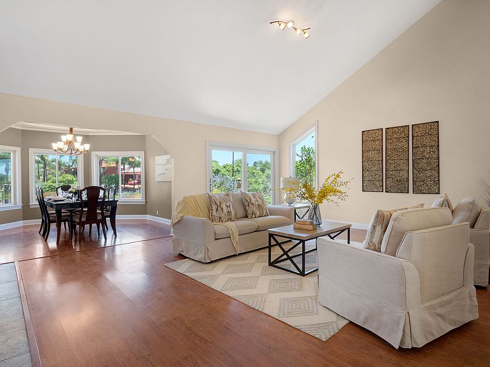PRICE REDUCED!!!!! Seller will entertain offers between 1,195,000- 1,234,499. Don't miss this rare opportunity to own a beautiful home in this sought after La Mesa/Rancho neighborhood! This meticulously cared for, privately gated home, sits atop its own hill with breathtaking views and endless opportunities. As you walk through the grand double front doors, you will enter the heart of the home, viewing an exceptional living area with vaulted ceilings surrounded with new crown molding & an open floor plan connecting the dining and kitchen areas. The remodeled kitchen is a chef?s dream with top of the line appliances, granite countertops, sit in bar top, walk-in pantry, as well as a separate breakfast nook. As you move about the home, you will see privacy and comfort come together as the spacious upstairs master suite is in its own wing of the home. This large room has its own fireplace, enormous walk in closet, vanity, as well as amazing views of the landscape, which you can enjoy on your new deck that surrounds the perimeter of this wing. The exquisite master bath has dual sinks, beautifully tiled stand up shower & a magnificent clawfoot tub. The master wing also includes a sizeable family room with a fireplace, as well as a small office. The other bedrooms are hosted in the other wing of the home, which includes the separate laundry room & two and half more remodeled bathrooms. The backyard is perfect for entertaining & boasts a newly resurfaced & re-coped, saltwater pool & spa and yard with endless space for loved ones. The 1.23-acre area also features a multitude of trees set up on a drip lines, which include Avocado, peach, lemon, apple, orange, & lime, as well as other beautifully colored plants, flowers and greenery. There is RV parking in the spacious front driveway, which also includes a 3-car garage with a 220 line for vehicle charge. You also see the pride of ownership with the following upgrades: new Anderson and Marvin windows & doors, new flooring throughout, fresh paint both in & out, as well as new stucco on exterior. Owners put on a steel roof with 30 years left on the warranty, as well as a 20-year, prepaid solar lease with 14 years left on the contract.