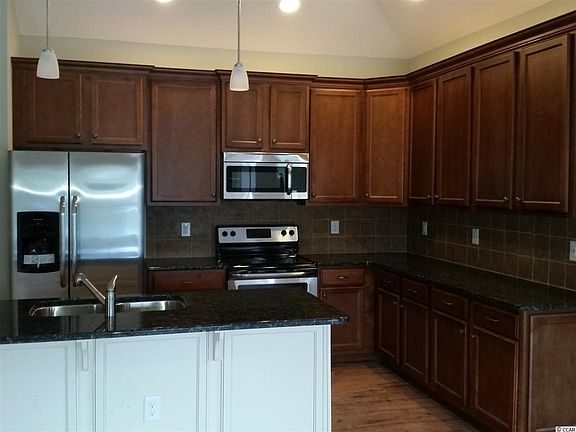 New construction home on a quarter acre lot, overlooking a lake with fountain. Home features stone accents, gutters on front and rear entrances, covered front porch, 5-4 Atrium doors to rear patio, 2 car attached garage, spacious living room with electric fireplace, vaulted ceilings in living room, dining area and kitchen, double crown molding in foyer and hallways, hand scraped laminate flooring in kitchen, living room, dining area, and hallway, tile in master bath and on kitchen backsplash, carpet in all bedrooms, 42" staggered kitchen cabinets, pantry, work island, Energy Star Frigidaire stainless steel appliances in kitchen, granite countertops in kitchen and cultured marble in both baths. Master bathroom features a walk in closet, double vanity, garden tub and walk in shower. Home is equipped with security package including 1 key pad, motion sensor and door sensors. Woodland Valley is a Coastal Golf Course community, overlooking Diamondback Golf Course and is conveniently located off Hwy 9 within approximately 15 minutes to all that the Grand Strand has to offer including beautiful beaches, first class shopping, live entertainment, over 1,700 restaurants, Intracoastal Waterway / water sports, and sporting events. The new McLeod Hospital is also located on Hwy 9 minutes away. GO TO DIAMONDBACKCOURSE.COM TO PREVIEW THE GOLF COURSE