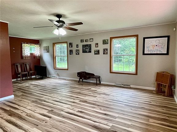 NEWLY PRICE TO SELL! ROOM TO GROW! Conveniently located between Bradford and Smethport. This home welcomes you with an open floor plan with a new custom kitchen. The living room, dining area and kitchen have laminate flooring and large windows to bring in natural sunlight. Plenty of kitchen cabinet space with granite counter top and drop in sink. Use the room on the first floor as a bedroom or an office and there's an additional room that is set up for a laundry room with a half bath and walk in closet. Full bath on the first floor too! The 2nd floor has 4 bedrooms and a full bath. The mud room leads to an attached oversized 2 car garage with a workshop and an enclosed carport with garage door. Large front deck and covered back patio on this large level lot. Shed and chicken coop.