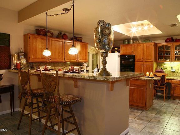 BACK ON MARKET AGAIN! If you are looking for a special home in absolute mint condition with 4 bedrooms and a 5th bedroom/den/office/game room flex option you have found it! This spacious home is in pristine condition and features comfortable living spaces for gracious living and entertaining. Spectacular vaulted ceilings and windows are featured in the living/dining room highlighted by a circular staircase to the upstairs bedrooms. The kitchen has been upgraded with beautiful granite counters and is appointed with quality appliances and fixtures. The kitchen also features a walk-in pantry and bayed eating area overlooking the backyard and patio. Backyard also features a covered ramada for outside enjoyment. Spacious 3 bay garage has separate workshop/bonus room.