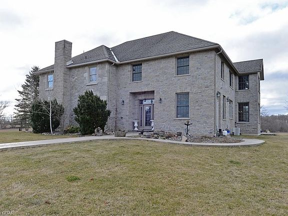 Beautiful fieldstone home circa 1873 with a spacious reproduction stone addition. Custom construction & finishing in the 12 year old addition, which features a bright and airy open concept kitchen, dining nook and family room with propane fireplace and two walkouts to the rear patio area. Formal foyer with exposed stone walls, powder room and mud room. The main floor of the original home boasts a centre hall plan, formal dining room with wood burning fireplace, living room with propane fireplace and library with mahogany built in shelving. The second floor has 3 spacious guest bedrooms with plank flooring, one with an attached ensuite bath. Additional 3 piece bath with glass walk-in shower and tile surround. The master suite in the addition is a true retreat, with its own private 5 piece ensuite bath, including glass shower, double sink and separate soaker tub, spacious walk-in closet and ample space for multiple sitting areas or reading nooks and a propane fireplace. Third floor finished space would make a fabulous studio or playroom. All of this situated on 5+ scenic acres in the beautiful rural Trent Hills. This home must be seen to appreciate the attention to detail!