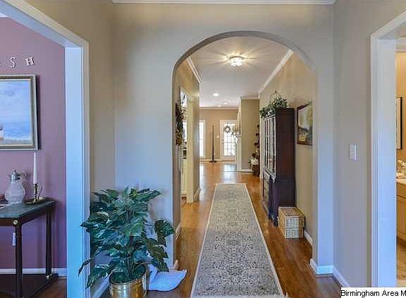 The gated community of Greystone Farms in Hoover is the location for this rare 4BR, 3BA, 2600 +/- SF home that is located in a cul-de-sac setting. The open plan has a separate dining room and a split bedroom floor plan. The kitchen, which opens to the family room, offers a gas stove, bar area, white cabinetry and plenty of work and storage space. Enjoy the cozy gas fireplace in the family rm that looks out over an expanded screen porch area. Extensive hardwood flooring throughout the main level except for the bedrooms. The private master suite has a jetted tub, separate shower and huge walk-in closet. The finished upstairs area includes a den with vaulted ceilings, full bath and walk in closet. This area would be perfect as a second suite or teen area! Large flat yard that backs to a natural area offering plenty of peace and privacy! Newer roof and a sprinkler system. Enjoy the amenities including a large private lake, pool, clubhouse and walking trails. Quick possession!