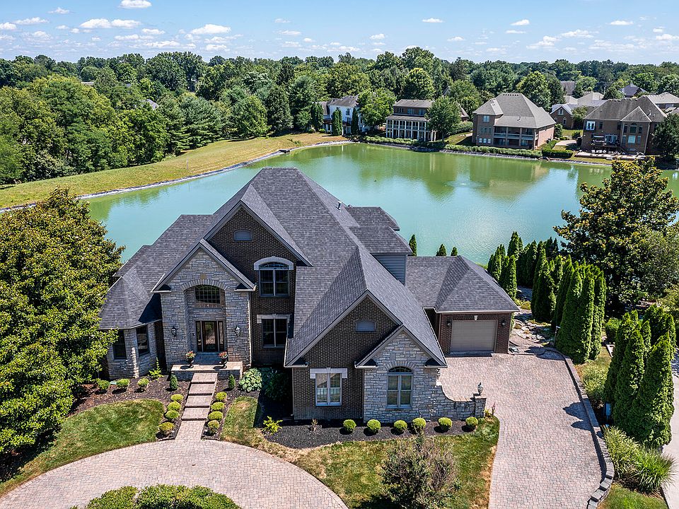 Wow! This lake view is amazing! Plus the gorgeous home, built by Nick Phillips, is lavish in every way. The home features gleaming hardwood floors, tall ceilings, a two story Great Room with fireplace, gourmet Kitchen which opens to a Hearth Room with fireplace, spacious Dining Room, and large Primary Bedroom with beverage bar, sitting area, attached Primary Bathroom and spacious walk in closet. There is a gorgeous wood paneled office all on the main floor. The second floor has three Bedrooms and two full Baths. The walkout Basement is one of a kind with very tall ceilings, two large Rec Rooms, a Billiard Room with beautiful Bar and see through fireplace with stone touches, a Bedroom, full Bath, Electrical Room and large Storage Room. The whole house has large windows and great natural light. The many updates include new roof shingles, updated HVAC, all new paint on walls and woodwork, and new carpet in Primary Bedroom. The updated landscaping is gorgeous with a lily pond and long waterfall. A 3 car garage completes this amazing home!