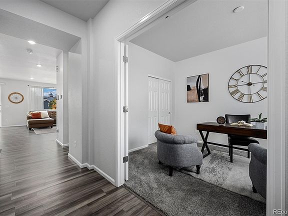 *******VA ASSUMABLE LOAN 2.25% INCREDIBLE OPPORTUNITY MUST BE A VETERAN TO ASSUME THE LOAN Welcome to this stunning 4-bedroom, 3-bathroom home in the highly sought-after Tall Grass community, located within the prestigious Cherry Creek School District. Situated on a desirable corner lot, this home features an open and timeless floor plan with beautiful vinyl flooring that flows seamlessly throughout the main level. The spacious main floor includes a versatile bedroom with French doors, can also be used as an office, and a convenient half-bath for guests. The chef's kitchen boasts white cabinetry, stainless steel appliances, quartz countertops, and a large island perfect for seating. The adjacent eat-in dining area flows into the family room, making this space ideal for both entertaining and everyday living. Sliding doors lead to a large backyard, offering plenty of space for outdoor activities. Upstairs, you’ll find a cozy loft and 3 additional bedrooms with a primary suite with a walk-in closet and a private bathroom featuring tile floors and quartz countertops. Each bathroom in the home is designed with beautiful finishes and modern touches. The unfinished basement presents endless possibilities, with room to add another bedroom, bathroom, and a game room or wet bar to suit your lifestyle needs. Located near shopping, dining, Southlands Mall, trails, and top-rated Cherry Creek Schools, Tall Grass is the perfect place to call home!