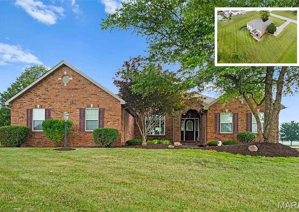Custom-Built Beauty on 1 Acre! Experience comfort, supreme craftsmanship, and convenient functionality in this 3/4 brick, split-bedroom ranch featuring 3 bedrooms, 3 full baths, and an oversized 2-car garage. Nestled on a full acre, this custom-built home impresses with vaulted ceilings, some beautiful hardwood floors, and an open concept featuring a stunning eat-in kitchen complete with staggered dovetail cabinetry, granite countertops, stainless appliances and direct access to maintenance free deck. Primary suite features massive walk-in closet and 5 piece en-suite. A versatile loft/den on the main level provides additional flex space perfect for an office, reading nook, or 4th bedroom. Spacious laundry room {w/ sink} provides wonderful opportunities to include drop zone. Full guest bath and 2 well proportioned guest bedrooms {w/ walk-in closets} complete the main level. The partially finished 9-ft pour walkout basement offers a fantastic family room w/ custom wet bar, full bath, and abundant storage {w/ double door access to backyard}. Practical features include geothermal heating and cooling, central vacuum system, sprinkler system, along with a new architectural shingle roof in 2024 to ensure lasting peace of mind.
