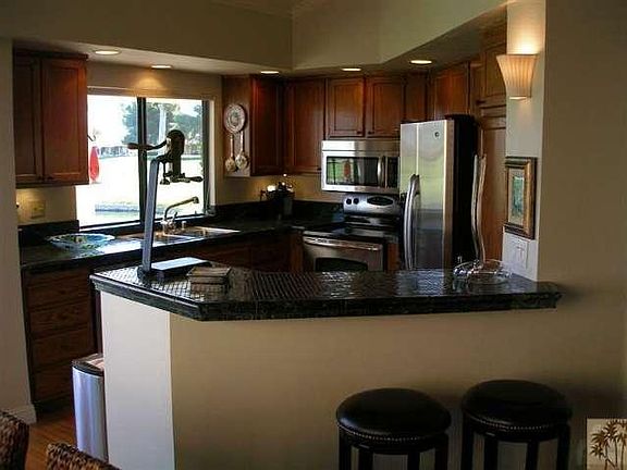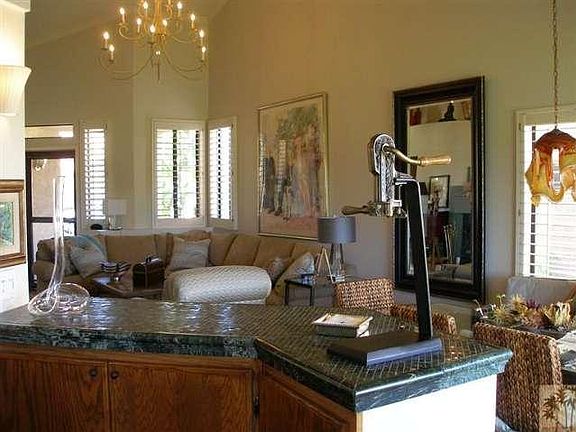 Wow!Beautifully remodeled and expanded this home shows like a model.Expanded kitchen with custom bar,stainless appliances and marble counter tops.Designer color palate,plantation shutters,wood and tile flooring,crown molding and custom gas fireplace.Luxurious bathrooms with new tile and fixtures.Entertain in style on the expanded patio with brand new Allumawood cover.Enjoy spectacular views of the golf course,ponds,water features and mountains.The lifestyle at Palm Desert Resort is exceptional.With 20 pools,14 tennis courts,pro shop,18 hole championship golf course,clubhouse with dining room there are endless possibilities to spend each day.