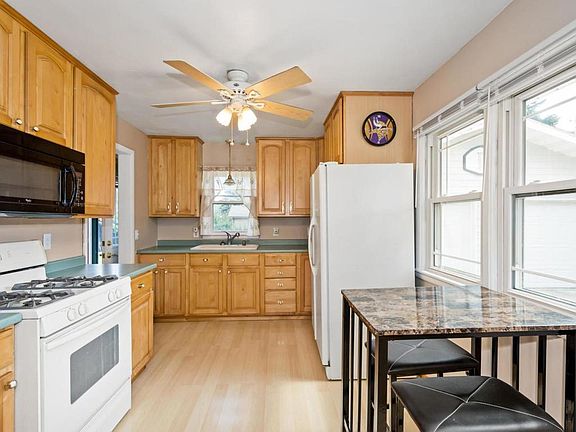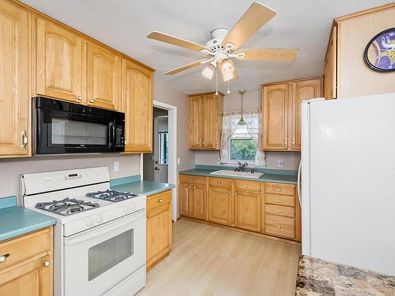 Beautiful 2 bed 1 bath Home with all living facilities on one level! Open floor plan, brick wood burning fireplace, cute corner windows through-out, large eat-in kitchen, totally remodeled bath, laundry on main level, huge over sized 2015 built garage, large backyard, maintenance free siding and much more. Priced to sell!