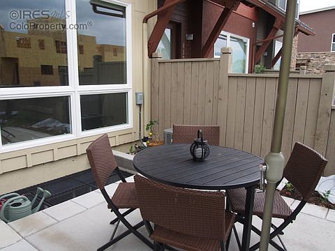 Gorgeous upscale Row home shows like new! Great light and a/c, 2 Bedroom plus loft study upstairs. High end finishes, 2 car attached garage, across from park in beautiful Northfield Commons. Full unfinished basement to expand into. Garage is attached you walk right into the kitchen from the garage. Great Flatiron views from the master and the patio.