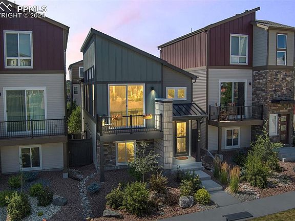 Welcome to this delightful 2020-built home, a perfect "Lock and Go" property ideal for those who love to travel or enjoy weekend adventures without the worry of yard maintenance. Situated in front of a vast open green space maintained by the HOA, this home offers the convenience oif a lawn without the maintenance. Connected to a scenic walking path along Cottonwood Creek, this bright and airy home features views of Pike's Peak. The main level boasts vaulted ceilings, enhancing the spacious feel, while a large sliding door leads to a deck where you can enjoy your morning coffee amidst stunning vistas. Recent upgrades include a Class 4 impact roof installed 2023, providing added peace of mind. Additionally, a new A/C system was installed in 2022. The bedroom and laundry closets have been recently updated by "Closets by Design" adding both style and efficiency. Centrally located off Woodmen Rd, this home is close to St. Francis Level 2 Trauma Center, the vibrant shopping options along the Powers corridor, and just 10 minutes from I-25. Don’t miss the opportunity to make this wonderful home your own. Come and see it today!