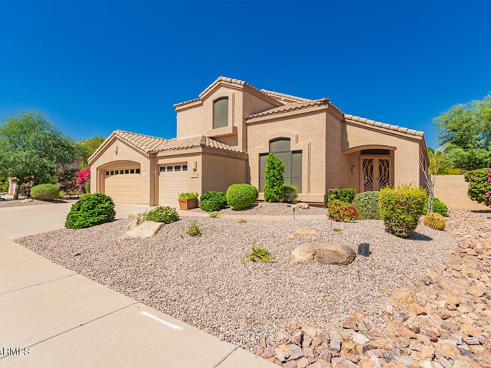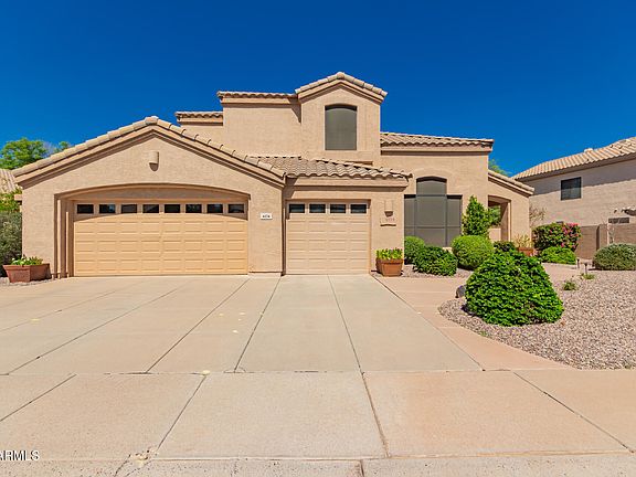 Gorgeous home nestled on a peaceful street in Park Promenade is a dream come true for you! Manicured, lush landscaping, spacious 3-car garage and an entertainer's dream featuring a sparkling pool with a sunken ramada surrounded by mature shade trees, including a built-in grill and a sink, with a swim-up bar, spa, firepit with built-in seating, an outdoor shower and a comfortable covered patio perfect for sipping some drinks will greet you upon arrival. Impressive interior, featuring 4 bedrooms, 2.5 bathrooms and a bonus room, enchanting living areas, offering a double-door entrance into a grand foyer, soothing color palette, arched doorways, striking vaulted ceilings, plantation shutters & a cozy fireplace. Beautiful kitchen boasts rich, raised panel wood tone cabinetry, granite counters, SS appliances, tile backsplash, a pantry, a 2-tier island, and a cozy breakfast nook with a bay window. Primary Suite is situated on the first level, offering a lavish ensuite bath w/dual sinks,a jetted tub, a large walk-in closet, and private access to the back patio. The guest bedrooms, guest bath, and loft area are all located on the second level and lead to a very nice balcony. Other updates include new whole-house insulation installed in 2023, sunscreens on the West and South windows, a new backyard sprinkler system in 2022, and fiber internet access to the home in 2025. This Chandler location is ideal - many options for shopping & dining and close to Loop 101 and 202.