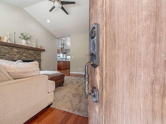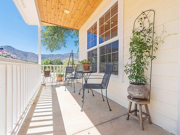 This lovely, clean and freshly painted home is move in ready! Immaculate care of home by owners. Vaulted ceiling in the living room and Master bedroom with high ceilings and wood flooring throughout the home. During the cooler season enjoy the propane fireplace for clean burning and convenience. Kitchen has updated counter tops, and appliances, pantry and beautifully finished cabinets. Very nice and roomy master suite with travertine tiles in the shower and a large bathtub. Windows throughout letting the outdoors in. Beautiful sunrise views of blossom peaks from the covered porch, peaceful sunsets views from pine tongue and groove covered back deck overlooking the neighboring properties pond. Plus, the entire property is fenced, irrigation sprinklers on the side and back yard with an approximately 10,000-gal water holding tank and ditch rights. Home sits on a multi-unit parcel. The 2 car detached garage has a large loft maybe used for either storage or a potential guest room.