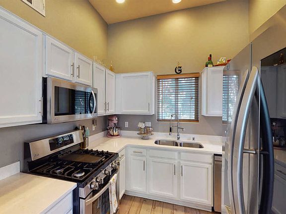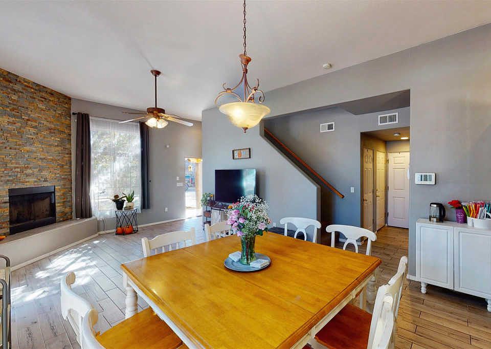 Charming two-story home in located in the desirable Nava Ade community features a livable floor plan with 3 bedrooms and 2 full baths. The open concept living/dining area has updated tile flooring with natural lighting through the many large windows and sliding glass doors that provide easy access to the outdoor areas. The master suite and bathroom are conveniently located on the ground floor with access to outdoor space, while upstairs has two more bedrooms and a full bath. An outdoor patio is located at the top floor to enjoy the night sky and the community. This home provides many upgrades including a new HVAC system, water heater, furnace. stucco work, roof maintenance, granite kitchen counter tops and sink. Appliances come with extended warranty and a new stackable washer and dryer will be installed. The backyard offers mature ponderosa trees to enjoy an evening of relaxation and night skies that lead to a walking trail. Nava Ade provides a community swimming pool, exercise gym, and sauna that is available to all residents. Come and see this well-maintained home before it's too late!