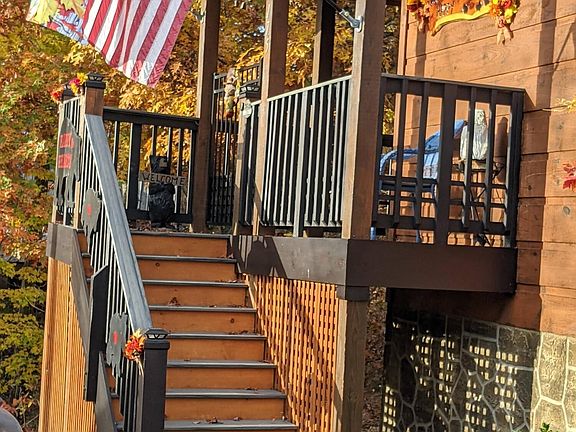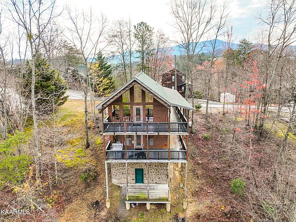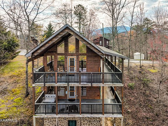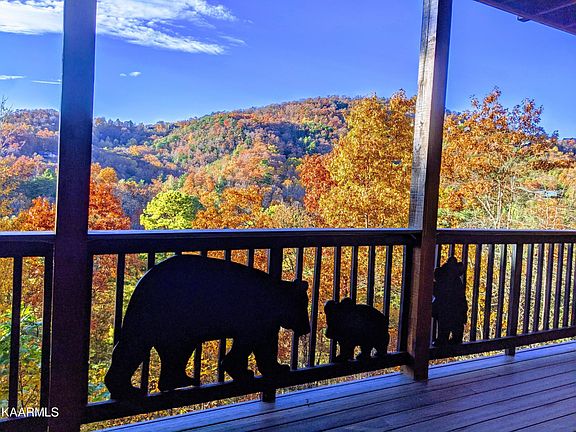 It's all about the view!! This gorgeous 2 bedroom, 2.5 bath cabin is a 'clean slate' and ready for you to create the cabin theme of your dreams! From 2017 this cabin has been a full-time private residence, prior to that was a short-term rental. The previous owner purchased it because she fell in love with the great 180* views from the spacious rear decks - spend a few minutes there and you'll see why! And given this has been a private residence for the past 6 years the maintenance on the property has been above and beyond that of a typical rental cabin - including approximately $40k in exterior maintenance performed in the past 3 years including a complete refinishing of the exterior stain, new composite decking, and numerous other small items that are often neglected. Whether this continues as a private residence or is converted back to a short-term rental there are various features that the new owner will find appealing including the ability to enter the upper or lower floor of the cabin from the exterior, the large basement fresh water cistern that reduces the wear & tear on the well pump, the peroxide injection system to provide quality water right out of the tap, ample flat, paved parking with space for multiple cars as well as a small RV, a low-threshold walk-in shower on the main floor, and equipped with electrical wiring and deck support for a hot tub should a new one be desired where the original one was removed. If you're looking for an investment property this is a hot spot! No HOA fees, a desirable low traffic cul-de-sac location, and 4 brand new cabins have been completed within the past year or are under construction, all within a short walk of this property. But don't worry, sitting on .89 acres this cabin still affords a feeling of privacy when enjoying the spacious rear decks given the generous distance between the cabins as seen in the aerial photos.