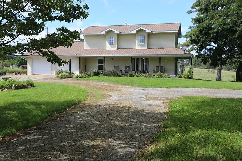 Home with pasture, pond, and barn with lean-to is for sale in West Plains, Missouri. This home in the Missouri Ozarks of Howell County offers 28 acres of woods and pasture with a large barn and lean-to. The lean-to has 2 open stalls offering the option of storage of machinery or recreational vehicles. The barn has concrete floors and electric with storage shelves and ample room for a workshop or indoor storage of machinery. The circular drive to the home boasts nice landscaping and mature trees with a covered front porch. The home has a covered 4-season sun room that is perfect for entertaining and enjoying the view in all seasons. This 3 bedroom 2 bath home has a native stone fireplace insert in the family room and an open galley kitchen with breakfast bar. The private acreage offers the opportunity to enjoy a hobby farm on the 28 acres in Howell County and there's an abundance of outdoor activities to be enjoyed on this country home in the Ozarks of Missouri
