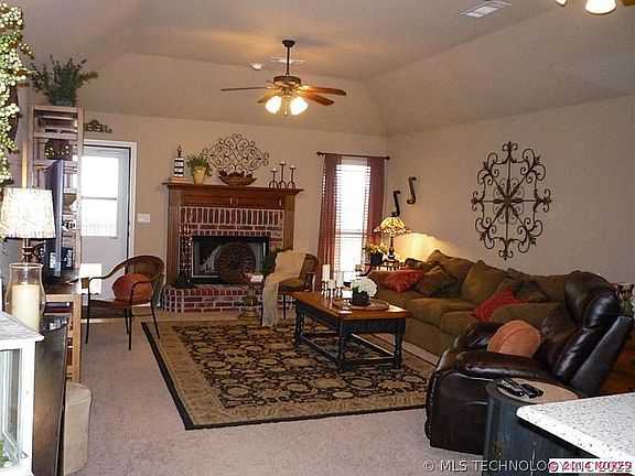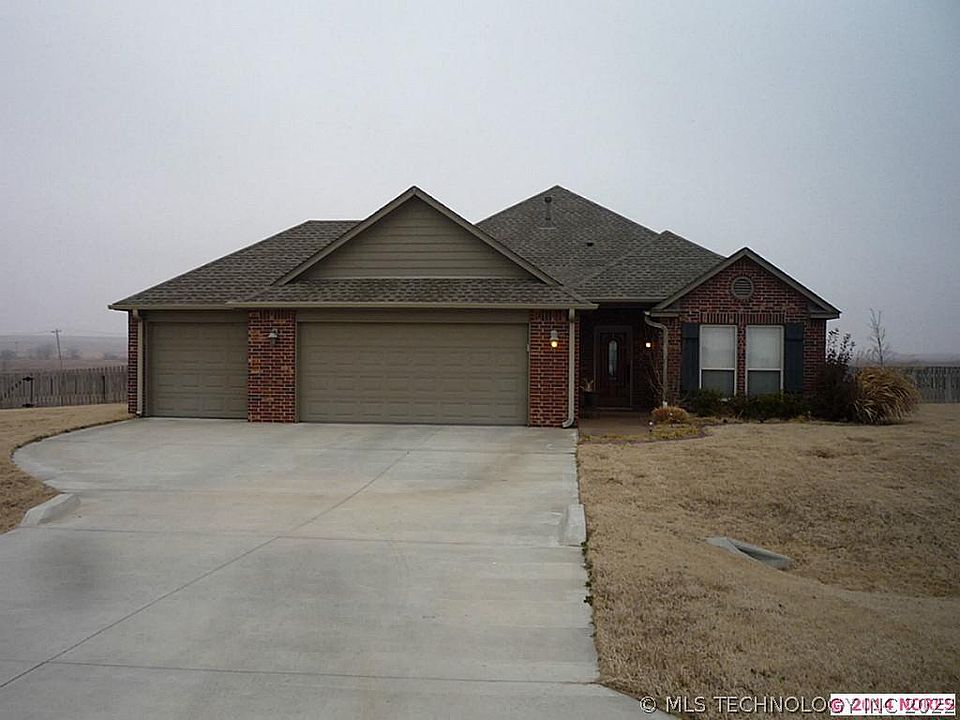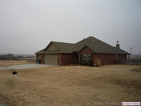 Stained concrete walk, painted garage floor, added top soil on front yard- Plus a 3 bedroom, 2 bath home w/3 car garage. Granite counter tops & other extras in this beautiful home. Easy access to HWY 75 - Appx. 25 min. to Btvl & 15 min. to Tulsa.
