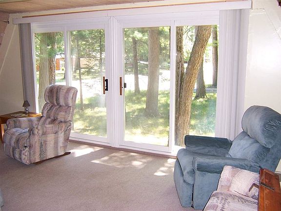 WALK TO KELLY BEACH from this nearby classic A-Frame cottage! Kelly Beach features a large public sandy beach with boat launch. Snuggled on a semi-private wooded lot, this cottage offers two upper level bedrooms, open floor plan on main level with full kitchen and a bath. Heat provided by a natural gas free standing stove. New metal roofing June '18. Large deck overlooks spacious rear yard. A portable boat/vehicle garage is onsite and can be included in sale. This is the perfect get-a-way for those lovers of Higgins Lake and all the area has to offer.