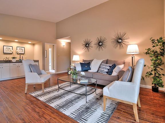 Remodeled Beauty Among Treetops! Situated in the serene and beautiful park-like setting of the Lauriedale complex, this just completed remodel is a top floor condo in a quiet location, with a large private balcony surrounded by trees and overlooking a beautiful greenbelt. This modern luxurious home offers 2 Bedrooms overlooking Laurel creek and 2 Baths (2 Master Suites), with tasteful touches throughout. The beautiful new kitchen features high-end quartz counters, stainless steel appliances, soft close custom cabinetry and a breakfast bar that opens up to the large open living room accented by a dramatic vaulted ceiling and a charming nook. Elegantly enhanced by warm designer colors, new rich engineered hardwood floors, plush carpeting in bedrooms and plank ceramic tile floors in bathrooms, dual pane windows, walk-in closet. 1 Car oversized carport. Large private storage room. Complex features beautiful grounds, several pools, tennis courts, spa, sauna, gym, rec room.