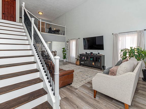 This charming two-story home in the Linden Point Subdivision features newer flooring throughout and fully remodeled bathrooms and new kitchen cabinets. It also boasts a new handrail, and updated doors. New patio sliding doors that lead to a spacious backyard, complete with a shed. The main floor includes a master bedroom with an en-suite full bathroom. Upstairs, you'll find two additional bedrooms and a cozy loft area. The large basement features an egress window, offering potential for additional living space. New concrete patio in the back perfect to enjoy the summer nights.
