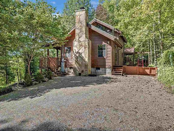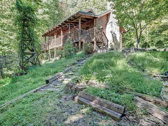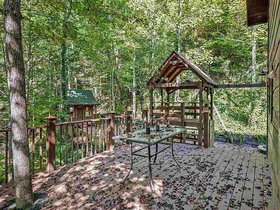 PRICE ADJUSTMENT! SELLER SAYS BRING OFFERS!! If you are trying to escape city life, then this cabin is waiting for you. Located on almost 9 acres this cabin boasts a wrap around porch, with plenty of space on the side of the cabin for a patio table and chairs. Relax on the deck while the kids play on the playground, yes, a playground with a playhouse. You will find a spacious open area that includes a full kitchen. The open living area has a beautiful fireplace. R/0 system in place. There is another building up on the hill. Seller may be open to selling cabin without acreage for $398000.