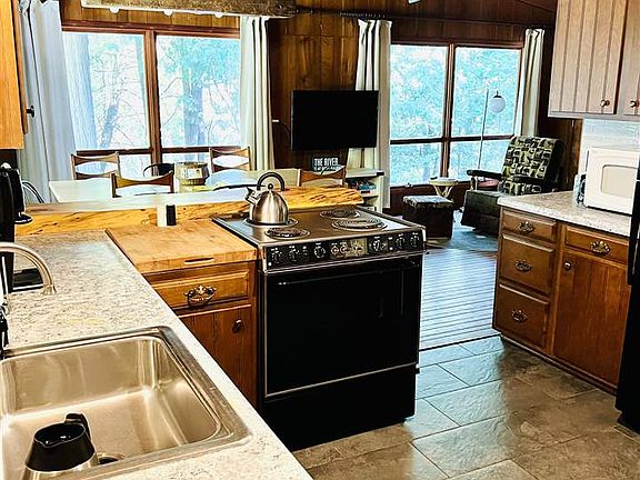 Absolutely charming home situated on 150 feet of the Sturgeon River. Three bedrooms and two full baths along with an open floor plan for comfort and ease of living. There is a garage steps away that needs completion but offers the start of a bed and bath suite, while still maintaining garage space. AND, next to that is a large pole barn for all of your storage needs. BUT!!! The best part is the Sturgeon River is waiting for you and all the fun activities one can imagine. There are so many opportunities on the River. Kayaking, tubing and fishing are just a few. This home is just outside of the Burt Lake State Park and boat launch. You can easily moor your boat overnight there and store it in the pole barn when you leave, it is the perfect setup. The current owners rent the home as an Air BNB. They generate a full schedule of renters for the summer and a steady stream of renters for the winter. Due to the busy rental schedule, there will be no showings before the open house Friday August 12th from 3pm to 5pm and Saturday August 13th from 10am to noon. As a courtesy to the renters, please refrain from pulling into the property.