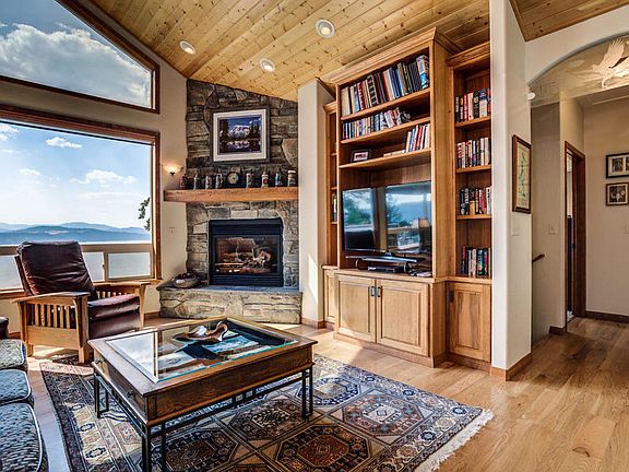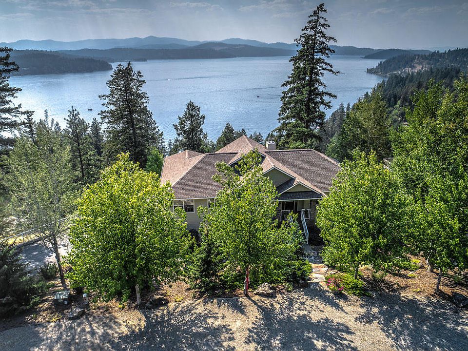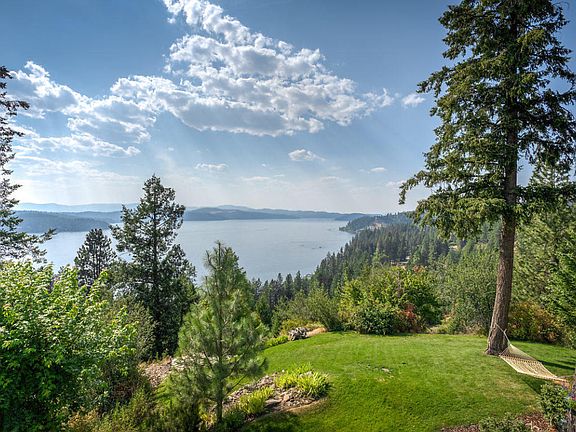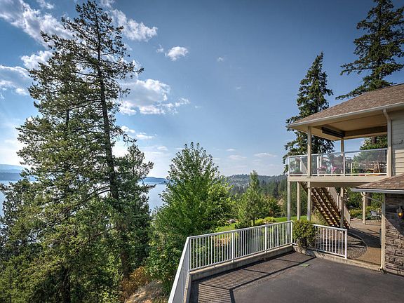 BEST CDA Lake Views. Best Lakeview on the market, close to CDA. This beautiful, well maintained custom home has high 9' ceilings on both levels, and all the higher end finishes, SS appliances, custom wood cabinets, vaulted wood ceiling, Granite counter tops Slate and wood floors, 2 Stone fireplaces, an open deck and a covered deck, almost 2700 sq ft of quality living space. Built in 2005 with Cement board Siding this beauty has new paint inside and out. Turn Key and ready for you. Hurry this one won't last.