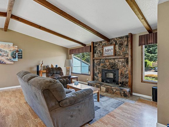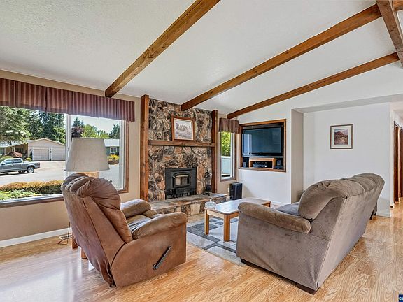 All the bells and whistles of an acreage property but with town amenities! This landscaped private 1/4 acre property is fenced with a creek, fruit trees and berry bushes. Deep 2 car garage with extra shop for your toy storage. This updated home includes solar panels, open remodeled kitchen and new wood stove insert. Enjoy the privacy of the backyard on your huge deck. A must see!