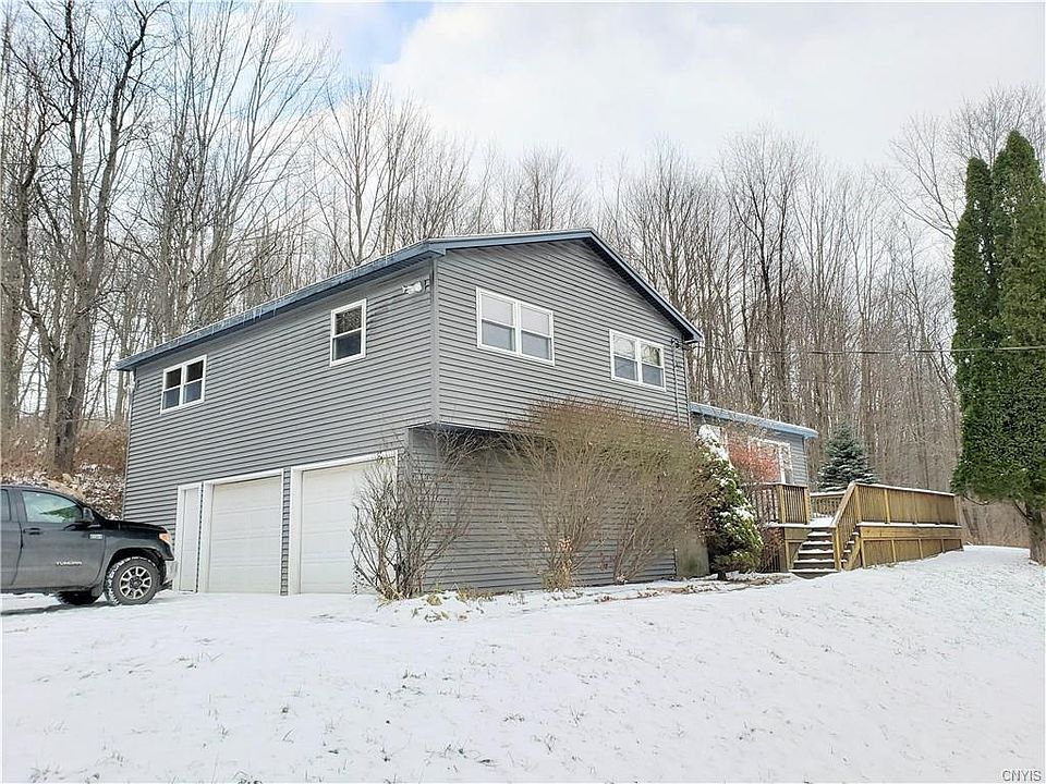 Welcome to your split level home nestled on wooded and private 2.6 acres including fruit trees. This home is only minutes to the City of Cortland and features an open main living area layout that is bright and inviting...and perfect for all your entertaining and holiday gatherings year-round. The large wrap-around deck is also perfect for outside entertaining and enjoyment. Inside there is warm and cozy fell with a centrally located woodstove that accents the hardwood floors running throughout the home. The basement is partially finished and ready for your finishing touches that will make a fantastic gathering or game room. So, there are many great features inside and out that will help you make this house a wonderful home. Also has golf and trails nearby. Call today for your appointment.