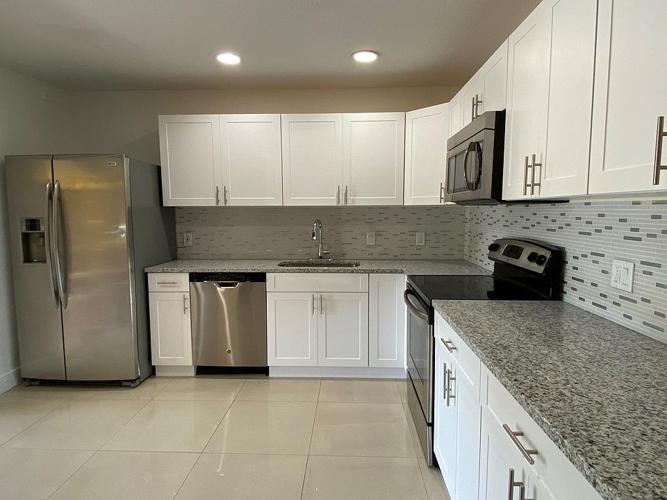 Beautiful and spacious 2 bedrooms and 2.5 bathrooms centrally located in a premium location in Lake Worth and Jog Road close to everything that you may need. This property was renovated recently including bathrooms, floors, kitchen, and roof. This is a spacious unit with 1,405sf which is larger than the regular townhouse in the area. The community has 2 swimming pools and this unit includes 2 parking spaces. First, last and security, clean background, no evictions required to move in. Available on April 1st, 2022.