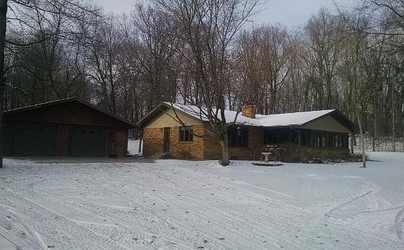 3 BR 1 BA on 5 wooded acres! Doesn't get any better than this! The home boasts a fireplace, gazebo, shed, 2 garages w/power, sunroom/possible 3 BR, maint free exterior. All living on 1 level & 500 SF in basement to be finished.