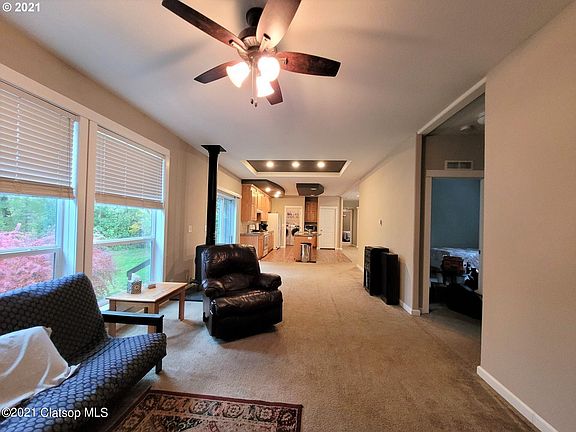 This well cared for home sits on 3+ private acres with wide open spaces surrounded by lots of mature trees. A chicken coop, fire pit and raised garden beds add to the country feel. Detached garage, RV parking, treehouse and a gathering area at the lower end of the property. Built in 2015, this home features 9'ceilings, Alder cabinetry, kitchen island and gas appliances. Short drive to Seaside and the beach.