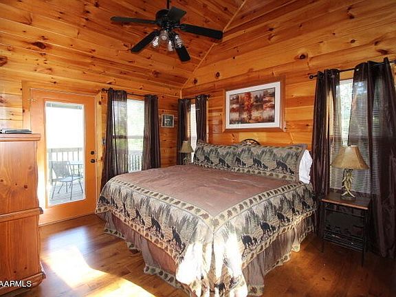 Owner/Agent Great rental revenue of $65k! 2 Bedroom cabin with Easy Access, Great Views, Level Parking and NO HOA!! This cabin features 2 Master Suites in desirable Wears Valley with a gorgeous view of Cove Mountain. Beautiful quality construction throughout, and the well-appointed, open floor plan makes this a great overnight rental. Each Level has it's own beautiful stone fireplace, Master Suite with Tile bath and Whirlpool Tub and deck access. New hardwood flooring installed on the main level. In the process of being stained. Convenient location to the Smoky Mountain National Park through Metcalf Bottoms! Seller is a Realtor. Offer deadline is Friday 2/11 at Noon.