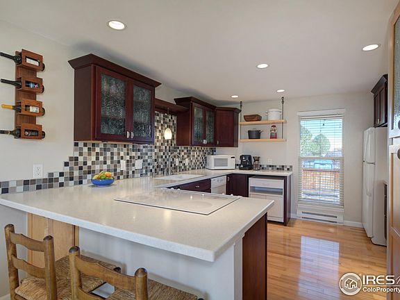 Nestled below Boulder's Mtns & Parks, updated 2bed/2ba Townhome boasts open & light living w/ detachd gar for your gear + 2 prkng spaces. Updated kitch w/semi custom Maple & Cherry cabs, dovetail full extension drawrs. Solid surface cntrs w/ seamless sink. Livingroom fireplace w/ Wood Burning Insert, poplar mantel, Solid Hickory Wood floors, Custom hardwood railings w/rolled steel. New wndws. Walk or ride to trails, Whole Foods, Southern Sun, Eldo, Climbing, Mesa trail, disc golf, South bldr rec center and a quick escape to I-70, DIA & Denver. Sit on the private Patio w/ coffee or a cocktail. Malibu lighting & drip irrigation system for mature & lush private landscaping. No one living above you/below you and lots of storage.