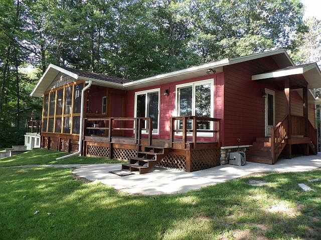 Gorgeous! Is just one word to describe this home! Totally remodeled and designed to enjoy waterfront living, located in an area that offers many recreational opportunities including ATV/UTV, snowmobiling, biking and more! From beautiful Hickory kitchen cabinets and hardwood floors in the open concept kitchen, living and dining rooms with fieldstone fireplace sets the mood for total relaxation! You can also enjoy the lakeside screen porch overlooking 149 feet of water frtg. Large master suite offers double sinks in full bath. Beautiful woodwork throughout the main floor and lower level walkout which offers a bonus room, family/rec room with full bath, workshop and utility area and hidden storage in the lower level. Property is tastefully landscaped with concrete driveway, two car detached garage with workshop and permanent pier. The Moen Lake chain of lakes is full rec and is an outstanding fishery with trophy quality fish. Meticulously maintained and waiting for a new owner!