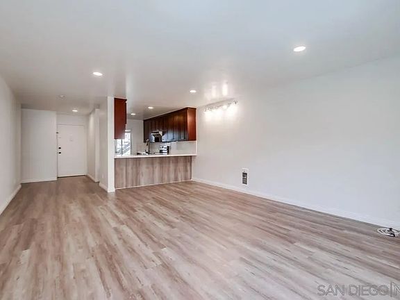 Move-In Ready! Amazing opportunity to own a light & bright upgraded 3-bed/2-bath ground floor unit inside the gated Village Square Community in Clairemont. The upgraded futures include the birch solid wood colored cabinetry in kitchen, quartz countertops in kitchen, bathrooms & bedrooms, laminated floors, recessed lighting & freshly painted throughout the unit(No Carpet!), remodeled closets in all 3 bedrooms, in-unit washer/dryer combo & dual-pane windows. Sliding doors to private balcony to entertain. 1 assigned covered parking space with storages to ensure your vehicle is accommodated. Complex amenities include 2 pools and spas, BBQ, recreational room & laundry facilities. HOA includes trash and water. Best location with easy access to freeways. Walking distance to schools, shopping centers, restaurants, and entertainment!