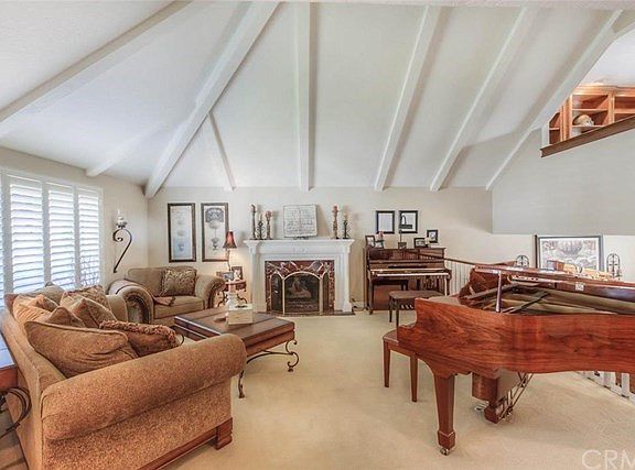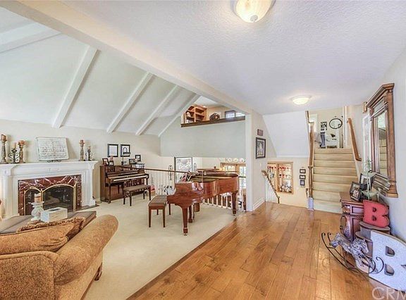PRICE REDUCED! Enjoy this beautiful multi level floor plan as you walk in through double leaded glass entry doors onto beautiful hardwood floors. The living room has dramatic open beam cathedral ceilings. On the entry level there is a bedroom, bathroom, laundry room & 3 car garage. The level up boasts the custom built home office, master bedroom suite w fireplace & spacious master bathroom & jacuzzi tub. The upper level features two bedrooms, full bathroom with granite counter. One bedroom has been updated with beadboard & crown molding. Go down a few steps to the formal dining room w French doors. The kitchen has granite counters, double oven, trash compactor, pull out drawers & hardwood flooring. The spacious family room has a wet bar, sitting area, the third fireplace (all with gas logs) & two sliding doors out to the patios. Throughout the home there are plantation shutters & double pane doors & windows. The closets contain upgraded interiors. This tree lined property has amazing privacy with decks, beautiful waterfall w lights, fire ring & BBQ area. A great backyard for sunset entertaining and is the only one on the street fenced down to garden planters at the bottom. Award winning school district. Within the Yorba Linda High School boundaries.