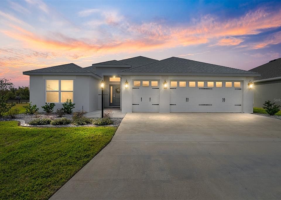STUNNING BARELY LIVED IN MOCKINGBIRD MODEL WITH 2-CAR + GOLF CART GARAGE IN THE VILLAGE OF RICHMOND! This beautifully designed home offers the ideal blend of space, upgrades, and true Florida lifestyle living in one of The Villages’ most desirable areas. As soon as you arrive, you will appreciate the PROFESSIONALLY LANDSCAPED YARD. Inside, you’ll love the OPEN-CONCEPT FLOOR PLAN featuring LUXURY VINYL PLANK FLOORING throughout the main living areas, a spacious kitchen with QUARTZ COUNTERTOPS, STAINLESS STEEL GAS APPLIANCES, and LOTS OF CABINET SPACE—perfect for both everyday living and entertaining. The thoughtful SPLIT BEDROOM DESIGN provides privacy for guests, with CARPETED GUEST BEDROOMS and a guest bath offering a TILED TUB/SHOWER COMBINATION WITH LINEN CLOSET. The owner’s suite is a true retreat with TRAY CEILING, DUAL WALK-IN CLOSETS, DUAL SINKS, and a stunning ROMAN SHOWER. Additional interior features include a convenient INSIDE LAUNDRY ROOM, HIGH CEILINGS, and FANS IN EACH ROOM. Step outside to enjoy the oversized, large-screened lanai with an OPEN VIEW AND NO KISSING LANAIS, offering privacy and peaceful outdoor living. There is also PLENTY OF ROOM FOR A POOL OR ADDITION, making this home ideal for future expansion or creating your own outdoor oasis. The highly desirable 2-CAR + GOLF CART GARAGE provides ample space for vehicles, storage, and all your recreational toys. PRIME RICHMOND LOCATION! Located in the highly sought-after Village of Richmond, you are just minutes from Brownwood Paddock Square for shopping, dining, live entertainment, and movies, along with multiple championship and executive golf courses, state-of-the-art recreation centers, pools, fitness centers, and pickleball courts. Daily conveniences such as grocery stores, medical facilities, and banking are close by, with easy access to CR 466A and Florida’s Turnpike. This Mockingbird model is ideal as a full-time residence, seasonal retreat, or luxury retirement home in The Villages.