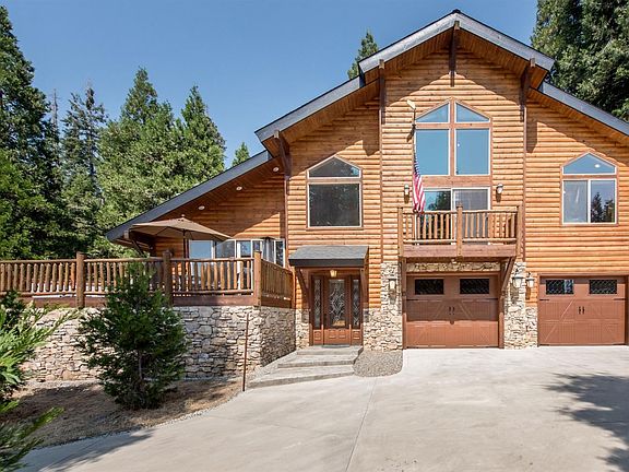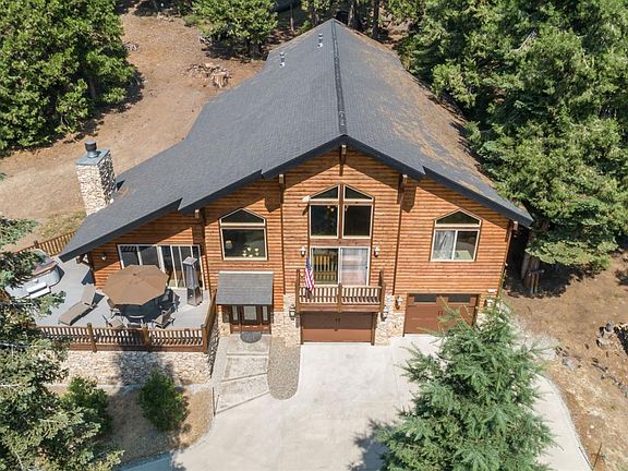 This incredible split-level Mountain retreat, with 2 master suites & 3 fireplaces, is in one of Shaver Lake's premier subdivisions...Timber Ridge. This 2007 custom home was designed by Architect, Ron Marlett & built by Ed Oak Creek Construction on approximately 1/2 acre of forest grounds. Designed to emphasize images of mountain dwellings & living...this mountain home features Pine log siding & Pine log details throughout. Everyone is welcomed through the Slate floored foyer, flanked by Knotty Pine railings & led up the grand wood entry stairs. The kitchen is complete with Knotty Alder cabinets, granite slab counter-tops and SS Thermador appliances. The entertainer's kitchen is situated on the second level with a commanding view of the soaring Pine ceilings overlooking the grand dining & living areas, complete with glue-laminated beams, and anchored by an impressive rock fireplace. Located on the spacious open deck is nestled an Epic - Marquee Spa for all seasons. Timber Ridge is a 34 minute drive up Highway 168 to skiing at China Peak Ski and Mountain Resort and of course readily accessible to water sports at Shaver Lake.