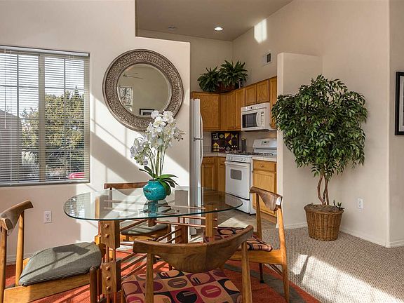 This mint condition Aspenwood floor plan in Nava Ade subdivision shows like a model! Beautiful, light and bright, home has a nice layout with a master suite downstairs with 2 additional rooms upstairs and a deck with views. Features also include high ceilings, new carpet, wood burning fireplace in the living area, sliding glass doors that lead to large open lot that backs up to walking trail, and an attached garage. Appliances included are the washer, dryer, refrigerator, and microwave. Community offers club house with swimming pool & hot tub and an exercise room. Convenient location near shopping areas and restaurants. Call today to schedule a showing!