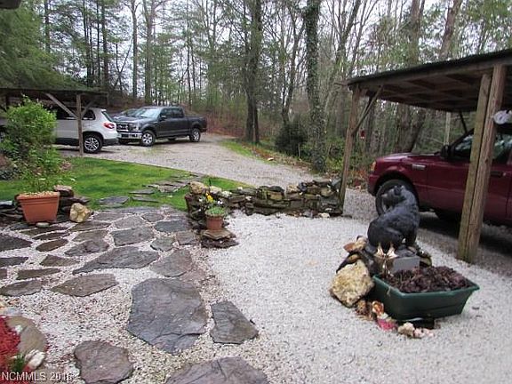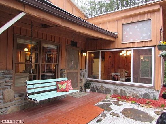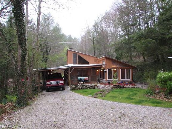 The Perfect Mountain Home with easy access off state maintained road. This Contemporary Cabin has custom woodworking and stonework throughout the home including a Library Loft with natural tree bough railing. Large woodburning fireplace in the Living Room with built in shelving. One of a kind Dining Room with window walls surrounding you and natural stone floor. A large bedroom includes plenty of room for your home office with sliders to the patio. Room for your garden, shop/studio, more.