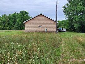 Hunters Paradise up for grabs. Featuring a 30 x 60 pole barn with a kitchen, bathroom, and bedroom with bunks and cedar shakes as siding. There are 3 permanent hunting shacks on the property. A creek runs through the backside of property. Furnishings negotiable.