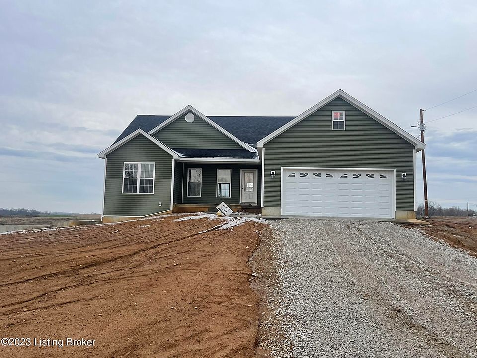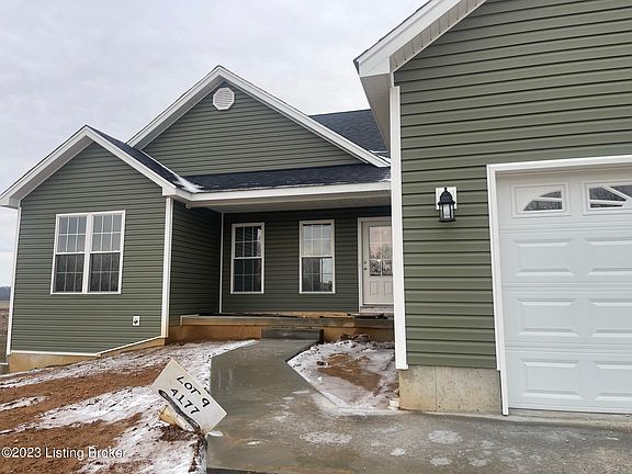 Beautiful single story new construction, within minutes of the city of Brandenburg. This 3 bedroom, 2 bath ranch includes a full unfinished walkout basement that has been rough plumbed for potential 3rd bathroom. Enjoy the views that surround the home from the covered front porch or back deck of the home. Storage will be no problem as all of the bedrooms include large closets, with the primary suite featuring a walk-in closet. Make this home yours today! Home is complete and ready for move-in!