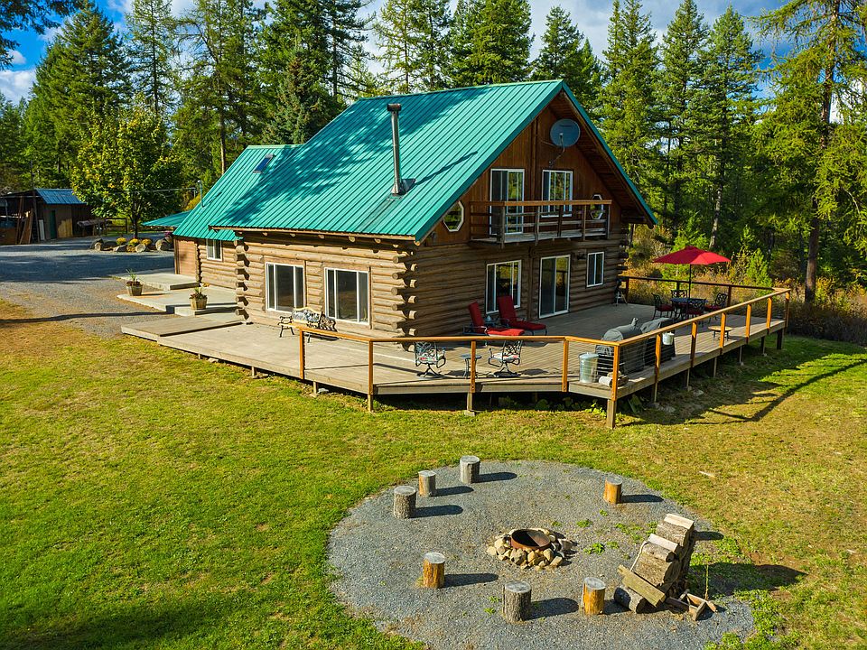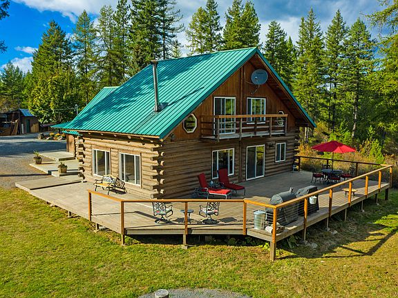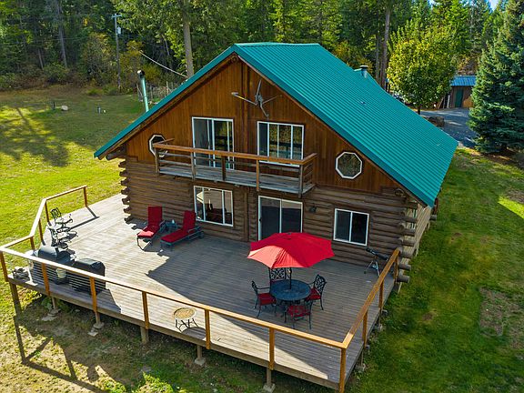 If you are looking for privacy, but easy access, look no further! Close to 20 beautiful treed acres, with panoramic views of the surrounding mountains with seclusion and privacy in this 1 1/2 story log home. ,split log stairs to upper 2 bedrooms, open loft area overlooking living room, master suite with walk-in closet, full bath and slider to balcony, large sunken living room with ceiling fan & wood stove, main floor bonus room or 3rd bedroom with no closet, kitchen with eating bar and propane range and stove, informal dining area. ,main floor laundry/mud room, garage/shop and don't forget the large beautiful deck, plenty big enough for all your company. Subject property is located off maintained county road.