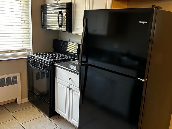 This apartment features a renovated kitchen (new black appliances, faux granite counter tops, ceramic tile flooring and new lighting). The