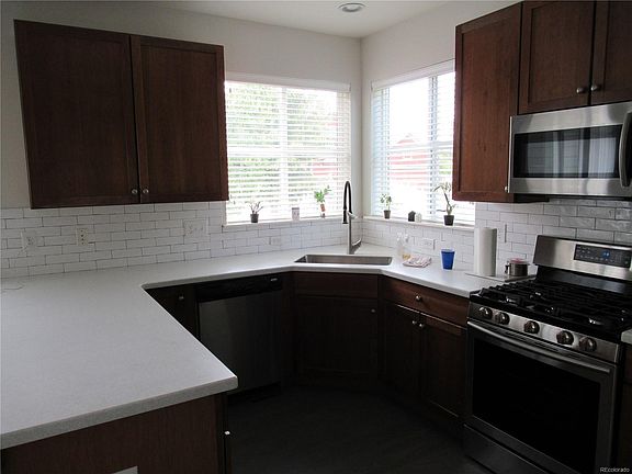 Highly sought after, this single family home in Centerra neigborhood, Rocky Mtn Village which is part of High Plains Village features trails, lake, nature center, close access to I-25 for easy commute.Newly built High Plains K-8 Stem school, shopping, restaurants, medical close. 4 bedrooms, office with french doors, upstairs Rec/bonus room, full basement, real wood floors, remodeled kitchen with new gas convection stove/oven, new counter top, sink, upgraded faucet, disposal, energy efficient hot water heater, new HVAC motor, new paint in and out. new patio, farmhouse/industrial decor. Mountain and lakes view. Neighborhood events. Lot abutts to park like green area on 2 sides with large Colorado Pine trees. This builder used lush landscaping. Close to Boyd Lake for boating, skiing, beach for swimming. Neighborhood has small fishing lake. You will love this neigborhood. Low taxes and low HOA.