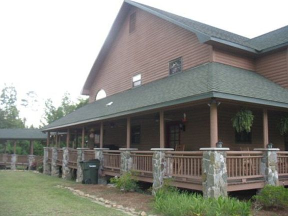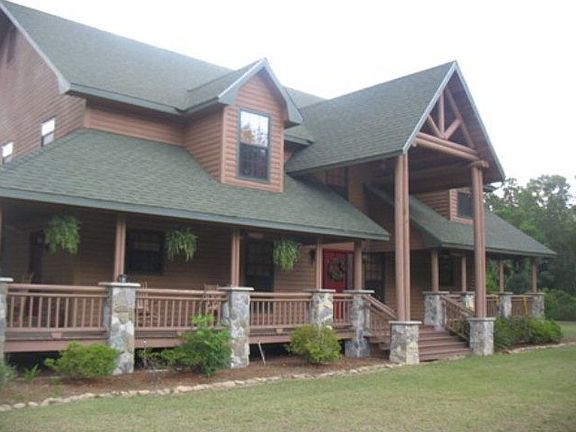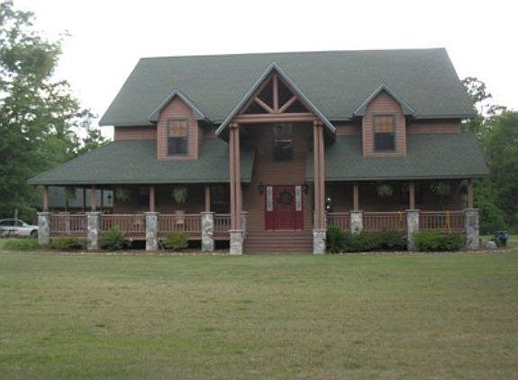 Gorgeous log cabin style home on 22 acres! Property includes fencing & stables for horses, fruit trees, & ample privacy! The wrap around porch makes this home look like it belongs in a magazine & the inside continues the pace. Built w/ all treated wood inside & out, the architecture is a master piece! The gourmet kitchen offers plenty of room for an enthusiastic cook & is open to the dining room & great room. The wood beams throughout add to the luster of the home. There are 2 master suites, one downstairs & one upstairs, as well as an extra room aka man cave downstairs & a half bath. The stone fireplace completes the great room. Upstairs there are 3 large bdrms & a loft area to admire the beauty below. The downstairs master bedroom has a large master bath w/ walk in tiled shower & jetted tub. Out back there's a salt water pool surrounded by a large deck, perfect for entertaining.