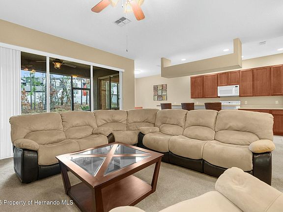 Move-in Ready! Well maintained, large home! 4 bedrooms + 2 bathrooms + 3 car garage with triple width driveway for extra parking + NEW ROOF (will go on the home before closing) + located in the highly sought-after Sterling Hill community! Featuring an open floor plan, high ceilings, and expansive glass sliders, this home is filled with natural light, making this home feel light, bright, and spacious!! The home is large with almost 2,000 sq ft of living space (1,949 sq ft living; 2,790 sq ft total). Rarely lived-in as it's been a second home for only a couple months each year. NO FLOOD ZONE (X Zone). Grand entrance with foyer + large great room + formal dining room + breakfast nook + covered and screened rear lanai! The spacious kitchen, living, and dining areas seamlessly flow together, making it perfect for entertaining or relaxing with family. The primary suite offers a peaceful retreat with a spacious en-suite bathroom and LARGE walk-in closet, dual sinks, soaking tub, separate walk-in shower, and private toilet room! Three additional bedrooms and second bathroom provide plenty of space for family, guests, or a home office. Spacious 3 car garage for all your cars and toys!! Resort-Style Living at Its Finest!!! Located in a gated village of the Sterling Hill Community offering TWO clubhouses, TWO community pools, a fun splash park, dog park, two gyms/fitness centers, tennis court, volleyball court, basketball courts, and two playgrounds—all just steps from your door! Prime Location!! Enjoy the convenience of being just minutes from Publix, Walmart, Target, and more shopping options, restaurants for dining, movies, TGH Brooksville Hospital, top-rated schools, and all the amenities the Tampa Bay area has to offer. With easy and quick access to the Suncoast Parkway, you're just a short drive from downtown Tampa, beautiful Gulf beaches, and local attractions. 10 minutes to kayaking the clear Weeki Wachee River and swimming with the manatees!! Boating, fishing, paddle-boarding, jet-skiing, sunsets at Pine Island, enjoying the day at Buccaneer Bay Water Park...all just minutes from this home! Don't miss this opportunity to own a home in one of Hernando County's most desirable communities! Schedule your private tour today!