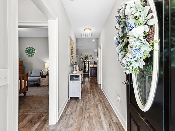 Discover your dream home in Woodland Valley, Loris! This charming 3-bedroom, 2-bathroom residence offers relaxing full lake view with everything you’ve been looking for. As you enter the welcoming foyer, you’ll find two spacious bedrooms and a beautifully appointed guest bathroom. The open-concept great room features a vaulted ceiling, ceiling fan, and stunning LVP flooring that flows seamlessly into the kitchen and dining area. The kitchen is a chef’s dream, boasting ample cabinetry, upgraded quartz countertops, a stylish backsplash, and a farmhouse sink, along with plenty of counter space and a convenient pantry. The large owner’s suite is a true retreat, complete with a walk-in closet and a private bath. This home is packed with upgrades, including landscaping with timed lighting, a SunSetter awning, an extended patio with an extra 9x6 ft concrete slab, upgraded flooring in the bathrooms and laundry room, and wiring for a hot tub or swimming pool. Additional highlights include a radiant roof barrier, an irrigation system, gutters, a 2-car garage, and easy attic access with pull-down stairs. Don’t miss out on this exceptional property! X Flood zone. Never flooded.