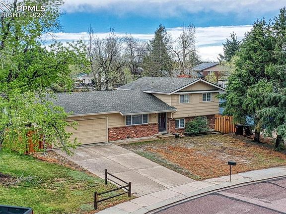 For a quiet location and a large private back yard, look no further! In this Northridge tri-level you get three bedrooms upstairs plus an office on the lower level, two bathrooms, and an attached oversized two car garage on more than 10,000sqft of land! Beautiful new wood floor shines in the living room, primary bedroom, and upstairs hall. Main bedroom includes walk-in closet and attached bathroom. All bedrooms, living room, and family room have ceiling fans. Lower level family room features awesome new tile floor and a walk-out to the back yard. The office space also has new tile floor. Back yard is fully fenced and very private with shed included. The garden was producing corn, squash, beans, and cantaloupe. Garage includes built-in work bench and door to back yard. Tile flooring and coat closet at the entry are convenient. Kitchen includes a big stainless steel refrigerator plus a space where you can quickly install extra shelves or a pantry for lots of additional storage. Windows are double pane vinyl. The big dining room window really sets off the space, overlooking the back yard. Lower level laundry room includes washer and dryer. Water heater was installed in 2019. Main bathroom has tile floor and tiled tub shower surround, and the lower level shower also has a tile surround. The incredible convenience of this neighborhood is wonderful! Schools, parks, and trails are close by. Shops and businesses of all kinds line nearby Academy, Powers, and Austin Bluffs. All the mature trees in the neighborhood are priceless. And of course there’s no HOA. As Mark Twain said, “Buy land, they’re not making it anymore.” With this great property, you get both a nice house and a big parcel of land to go with it. You’re going to love it!