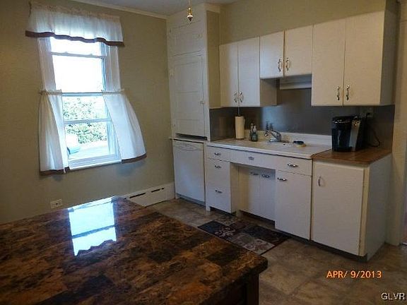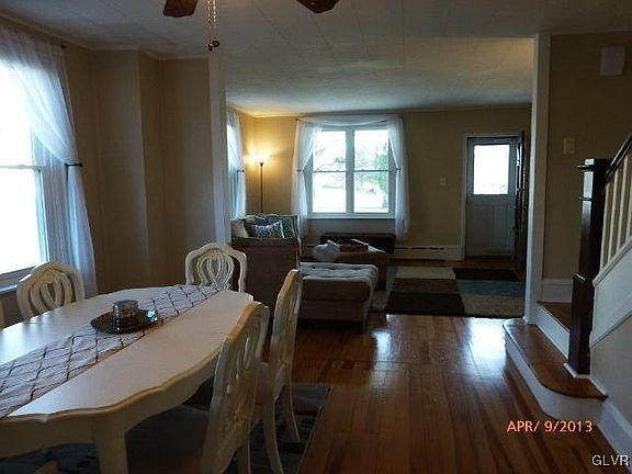 Beautiful four bedroom, 1.5 baths Twin in Coopersburg, walking distance to park and shopping conveniences, this large 1764+SF home, with hardwood floor in living room, dining room, all bedrooms and hall ways. 3rd floor bedroom is carpeted. Updated Kitchens and baths, 1st floor laundry, attached sun porch with air conditioning, great for entertaining and enjoying the privacy of the backyard. Car enthusiast will enjoy the detached 2 1/2 car garage with electric and with work shop area and full 2nd floor. New energy efficient windows installed throughout entire home. There is a Central Station Alarm System too. Convenience and Comfort, and much more. Call for an appointment today.